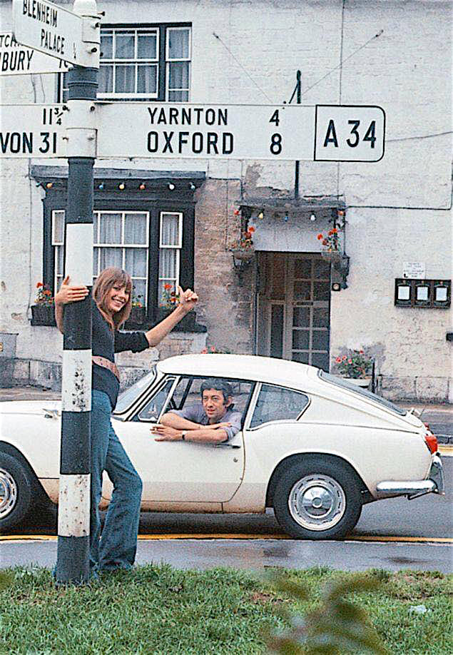 They seem to like the GT6 as they were photographed with both a Mk1 and later a Mk3. Jane Birkin & Serge Gainsbourg with their Triumph GT6 Mk1 in Woodstock, Oxfordshire (now the Punchbowl Inn). The famous couple are now photographed with a Mk 3 on the Isle of Wight in 1972.The car’s colour was apparently purple (Damson).Their daughter Charlotte Gainsbourg – the baby in the photo – is now a well-known actress.