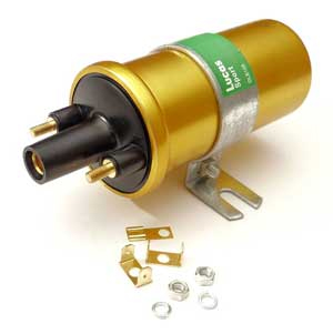 A coil, which acts as a step-up transformer, provides the high voltage (around 40,000 volts) needed by the spark plugs to ignite the mixture in the engine. Coils have two ‘windings’ around a common core, the primary which is connected to a 12v supply (the battery) and the secondary which outputs the high voltage for the spark at the plugs.