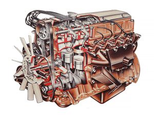 Sir John Black wanted an engine to compete with the Ford Zephr/Zodiac and Vauxhall Cresta which were fitted with an inline six-cylinder engine (I6). The advantages of an I6 engine is that it is inherently balanced – to Quote Car Throttle“Due to the normal firing order of a straight-six, the pistons move in-tandem with their mirror image on the other side of the engine block. So pistons 1 and 6 reciprocate, followed by 2 and 5 and finishing with 3 and 4. As pistons 1 and 6 reach top dead Centre, the other four pistons are evenly spaced at 120 degrees and 240 degrees respectively around the engine cycle, meaning that the reciprocating forces balance each other out. This makes a smooth-revving engine”. The engine was a conventional 2 litre design with overhead valves, a cast-iron block and cylinder head, and a pressed-steel sump.The camshaft drove the distributor and oil pump through a spur gear, which was itself chain-driven off the nose of the crankshaft, with the drive covered by a pressed-steel cover. The 2.5 versions had duplex chains.