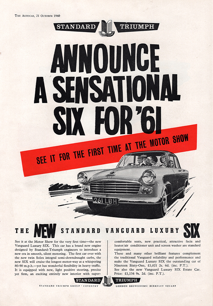 The Standard-Triumph cylinder engine was originally developed for the Standard Vanguard Luxury Six, which came out in 1960, see advert below
